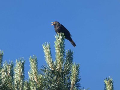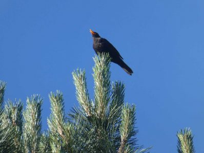 Stets die Übersicht zu haben – das ist für viele Menschen gleichsam wie der Traum vom Fliegen. Beides können sich mit Leichtigkeit die Vögel erfüllen – so wie diese Amsel auf dem Hausdach und in luftiger Baumeshöhe.