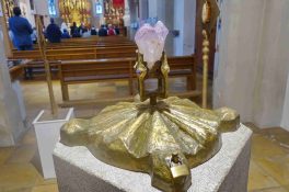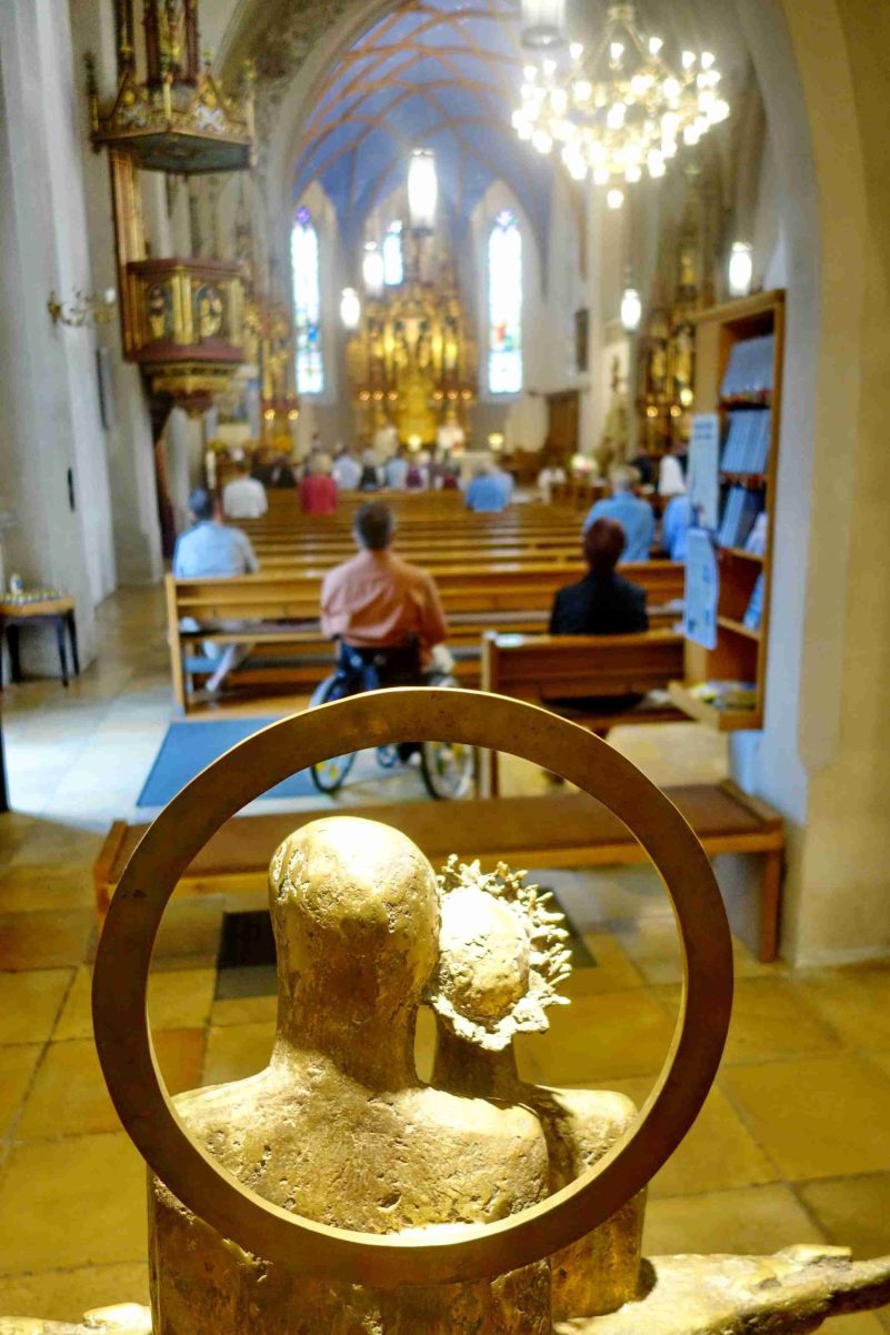 Mit einem Gedenk-Gottesdienst gedachte die Pfarrgemeinde „St. Georg“ in Eggstätt der vor 100 Jahren geborenen Bildhauerin Christine Stadler ehe ihr zu Ehren am Rathausvorplatz eine bis 19. August dauernde Ausstellung eröffnet wurde. Christine Stadler, die in Eggstätt zur Welt kam, dort aufwuchs und der Gemeinde einen großen Teil ihres reichen Schaffens vermachte, war auch für die Eggstätter Pfarrkirche eine wertvolle Künstlerin. Wie Pfarrer Andreas Przybylski, der den Gottesdienst zusammen mit Diakon Josef Stürzer feierte, erinnerte, sind der Altar als „Tisch der Eucharistie“ und der Ambo als „Tisch des Wortes“ in Schönheit und als sichtbarer Teil der Schöpfung Gottes von Christine Stadler geschaffen worden. Dazu erklärte der Pfarrer weiter: „Nach dem II. Vatikanischen Konzil mit Papst Johannes XXIII wandten sich die Priester als Stellvertreter Christi vom Hauptaltar ab, um den Menschen zugewandt zu sein. Damit musste ein Volksaltar geschaffen werden, der zum Hochaltar passte. Wir in Eggstätt bekamen von der heimischen Bildhauerin ein Original, das als Vorbild für Glauben dient“. Nach der Feier in der Kirche bedankte sich Bürgermeister Christian Glas für das Zustandekommen des Gedenk-Gottesdienstes, der kirchenmusikalisch mit Orgelklängen und Gesang von Sarah Rotter gestaltet wurde und lud zusammen mit Pfarrer Przybylski zu einem stillen Gedanken an der Grabstätte der Familie Stadler im Friedhof ein. Der Gottesdienst war einer der ersten Bestandteile des Jubiläums „150 Jahre Pfarrkirche St. Georg in Eggstätt“. Das bis zum Kirchweihsonntag, 16. Oktober gehende Programm sieht als Nächstes am Freitag, 29. Juli ab 20 Uhr ein Benefizkonzert mit dem Thema „Der Fluss“ in Bildern und Texten sowie mit Barockmusik vor. In der Kirche sind während der Ausstellungsdauer Werke der Künstlerin Christine Stadler zu sehen.