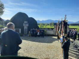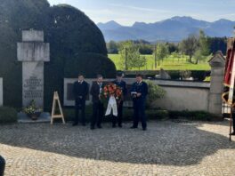 Nach dem Festzug marschierten die Mitglieder der Freiwilligen Feuerwehr Greimharting, der Hubertusschützen Greimharting, der Krieger- und Soldaten-Kameradschaft Prien-Greimharting und des Trachtenverein Ratzingerhöh Greimharting zum Kriegerdenkmal. Bevor die vier Vorstände der Vereine einen Kranz am Kriegerdenkmal ablegten, betonte Vorstand Johann Riepertinger jun. in seiner Ansprache die Sinnlosigkeit eines Kriegs. „Man kann ja nur hoffen, dass sich irgendwann die Vernunft durchsetzt und dass nicht ständig unnötig Leute sterben müssen, die nur das Werkzeug von den Machthabern sind!“ so Riepertinger weiter. Im Anschluss an das Gedenken marschierten die Vereinsmitglieder gemeinsam mit der Musikkapelle Prien in das Gemeindehaus Greimharting zu einem gemeinsamen Frühschoppen, der auch musikalisch von der Blaskapelle Prien begleitet wurde.