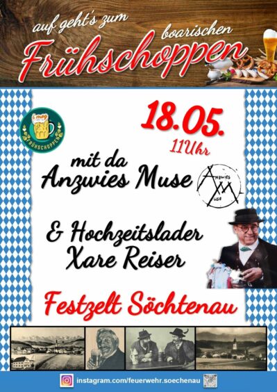 Summerer brauchte nicht lange zu überlegen und sagte sofort zu. Als kleines Vergelt´s Gott wurde ihm ein Regenschirm überreicht in der Hoffnung diesen für die Festwoche nicht zu benötigen. Die Planungen laufen bereits final auf Hochtouren. Das Festzelt mit Weißbierkarussell wird demnächst aufgebaut. Die Festwoche startet am Mittwoch, 17. Mai beim Bieranstich mit der „Dreder Musi“. Am darauffolgenden Vatertag spielt die „Anzwies Musi“ ab 11 Uhr zum Frühschoppen auf. Zwischendurch wird Xari Reiser, bekannter Hochzeitslader und Humorist aus Steinkirchen, den Frühschoppen mit lustigen Witzen und Geschichten bereichern. Am Freitag bringt die Band „Huraxdax“ Stimmung ins Zelt. Nach dem großen Festsonntag mit Festzug spielt die Söchtenauer Musi beim abschließenden Kesselfleischessen am Montag auf.