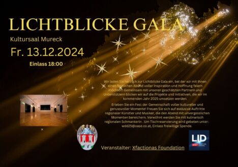 Dazu hieß es abschließend: „Wir freuen uns auf ein Wiedersehen dann bei der Lichtblicke Gala 2024/25 am 13.12 im Kulturzentrum von Mureck, wo ein Fest der Gemeinschaft kulturellen Austausch im Herzen Europas stattfindet neben Gästen aus Bayern – Österreich und Slowenien“.