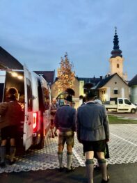 Auch wurde eine traditionelle steirische Buschenschänke besucht und die tolle Kulinarik von Kernöl & steirischer Jause und den weltbesten steirischen Weissweinen genossen. Natürlich wurde auch vor Ort musiziert.