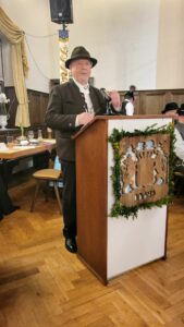 Siegi Götze aus Marquartstein unterhielt als Sprecher die Gäste mit interessanten und amüsanten Beiträgen zum ‘DiriDari’ (Geld) bestens.