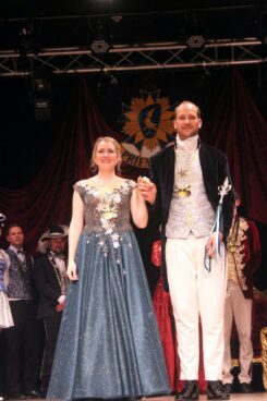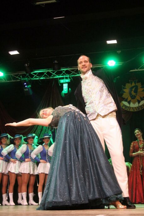Das Kinderprinzenpaar 2020, Julia II. und Lovis I. übergaben das Zepter nun an Prinzessin Antonia I. tanzende Regentin aus dem Reich der Lüfte und Prinz Markus I. Herrscher aus dem Reich von Wind und Wellen die einen schwungvollen Walzer und fetzigen Showteil präsentierten. Die Kinder- und Teeniegarde der Prienarria präsentierte Ihren Showteil zum Thema „Hippies“. Nach einer kurzen Tanzrunde waren nun die „Großen“ an der Reihe. Umrahmt vom Scheinwerferlicht und untermalt von dramatischer Musik zog das neue Prinzenpaar – Prinz Markus III. rollender Regent über die Straßen Europas vom Fuße des Kreuzbergs und seine Prinzessin Magdalena I. strahlende Hoheit und tanzende Herrscherin über das touristische Reich am bayerischen Meer – ein und übernahmen das Zepter von Prinzessin Maria I. und Prinz Seppe I.. Natürlich übergab auch Bürgermeister Andreas Friedrich den Rathausschlüssel und somit die Herrschaft über die fünfte Jahreszeit an das neue Prinzenpaar. Diese begeisterten das Publikum mit einem eleganten Walzer und einem fetzigen Showteil. Als Gäste durften wir die Showtanzgruppe Inntal begrüßen, die das Publikum mit einer gelungenen Show unterhielt. Zu rockigen Klängen und im Scheinwerferlicht zogen die Gardetänzer der Prienarria in rot und schwarz gekleidet durch den Saal ein und gesellten sich zu den auf der Bühne wartenden Gardemädchen, die sich in „Rockerkluft“ präsentierten. Zu Klängen von Alice Cooper, Volbeat, Twisted Sister, Metallica und Guns n‘ Roses rockte die Garde die Bühne. Spektakuläre Hebefiguren und akrobatische Showelemente gipfelten in einem Konfettiregen und tosendem Applaus des Publikums.