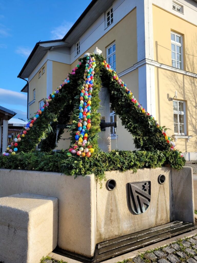 Knapp 600 bunte Eier zieren den ersten Eggstätter Osterbrunnen auf dem Rathausplatz. Farbenprächtig und fröhlich – genauso wie die österliche Botschaft von der Auferstehung Christi soll er sein. Die Aktion ist ein Gemeinschaftswerk von Christlicher Frauenbewegung, Gartenbauverein, Schule, Kinderbetreuungseinrichtungen und Gemeinde auf Initiative der Seniorenbeauftragten Marianne Schönhuber. Der Osterbrunnen ist noch bis zum 21. April zu sehen.
