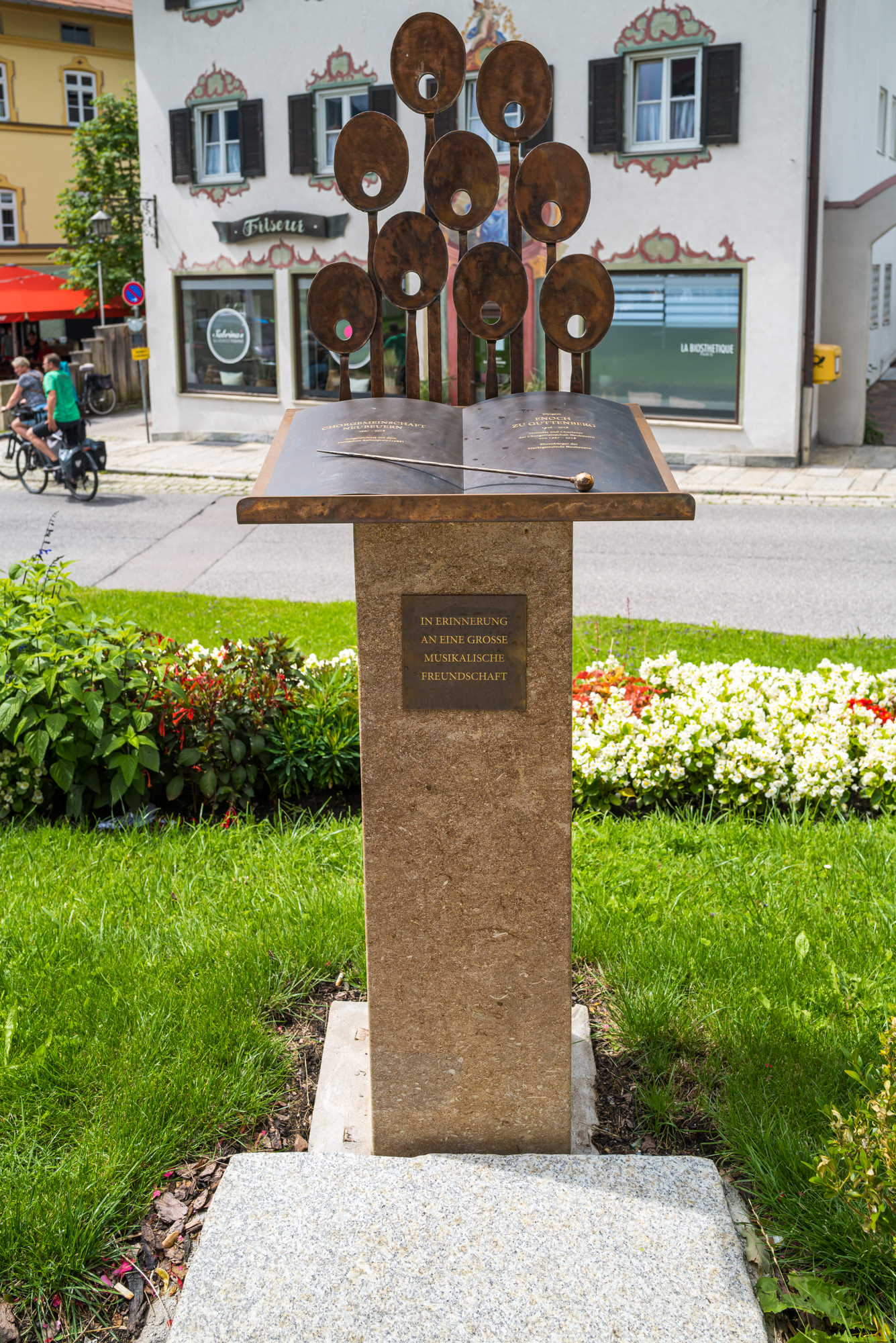 Das Denkmal selbst, also das Pult, die Partitur, der Dirigentenstab und die Chorleute mit den offenen Mündern