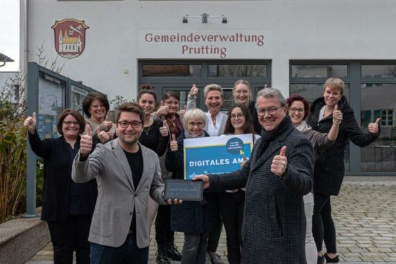 Die Digitalisierung in der Verwaltung ist gerade in großen Kommunen und Städten schon weit vorangeschritten. Aufgrund der oft fehlenden Strukturen ist es in kleinen Gemeinden wie Prutting eher die Ausnahme, dass die Digitalisierungs-Plakette verliehen wird. Da braucht es schon ein gemeinschaftliches Engagement aller Mitarbeiter und die Rückendeckung durch den Gemeinderat. Für den jungen Bürgermeister Thusbaß war es in seiner ersten Amtsperiode ein zentrales Thema, die Vorteile einer Verwaltungs-Digitalisierung zu nutzen. Zustimmung bekam er von seinen Mitarbeiterinnen und Mitarbeitern, deren Routine-Tätigkeiten können nun vereinfacht werden. Dies gilt zum Beispiel für das Standesamt bei Geburtsurkunden, für die Beschaffung von Ausweisen, für einfache Meldebescheinigungen, für die An- und Abmeldungen der Hundesteuer oder auch für die Briefwahl bei Kommunalwahlen. „Die Umstellung ist ein gewisser Aufwand, der sich aber sowohl für Arbeitgeber als Bürgerschaft lohnt“, so das einhellige Urteil aus dem Pruttinger Rathaus.