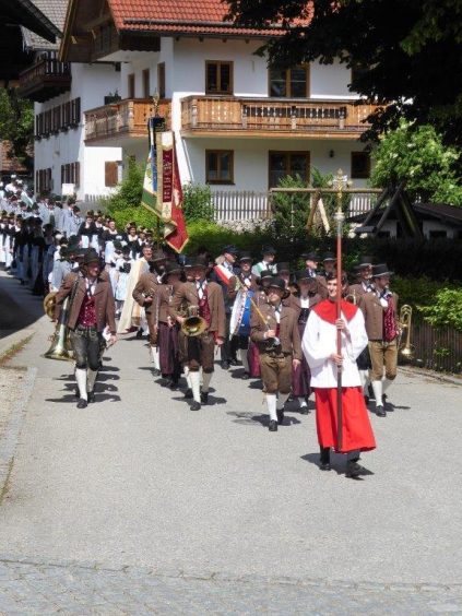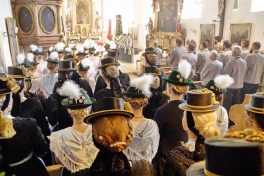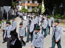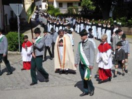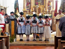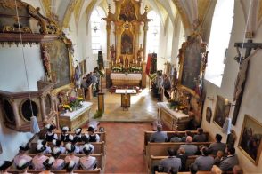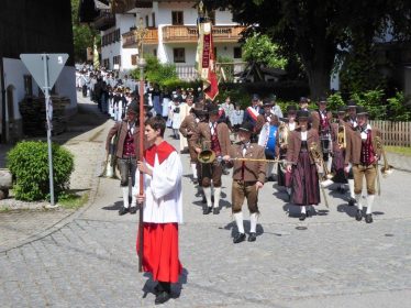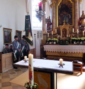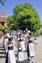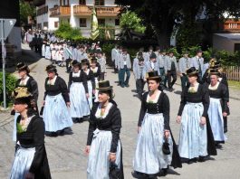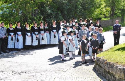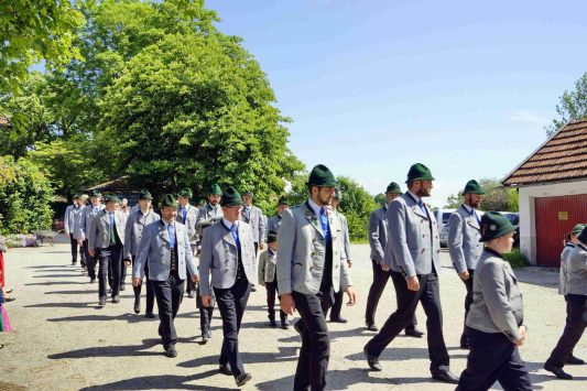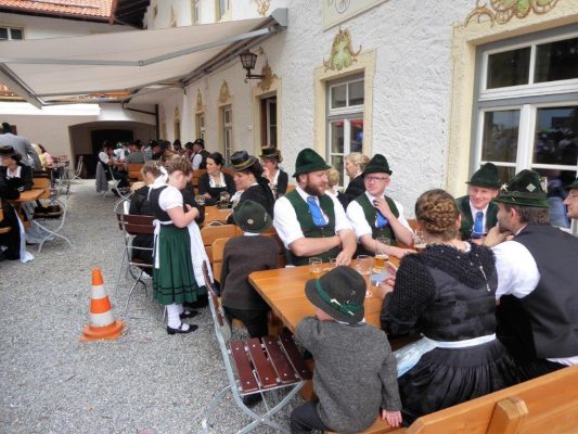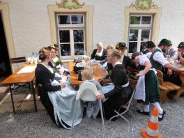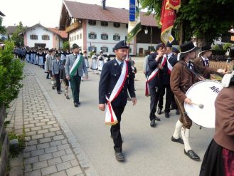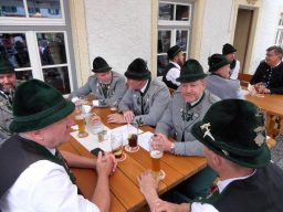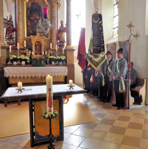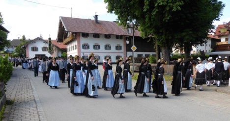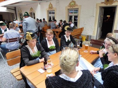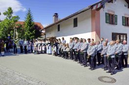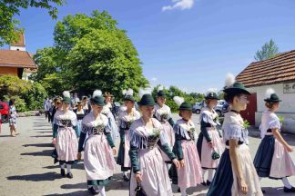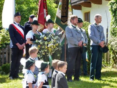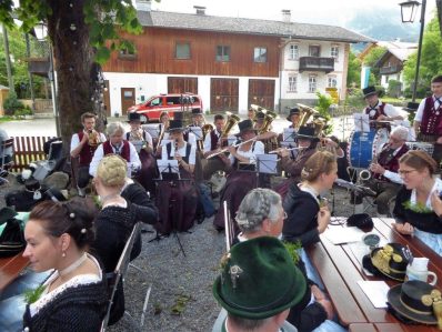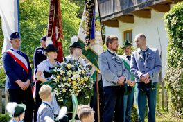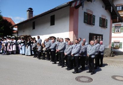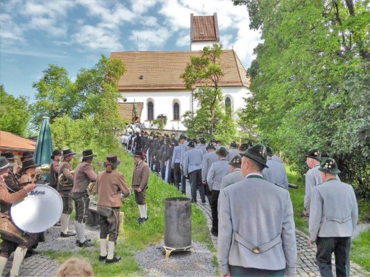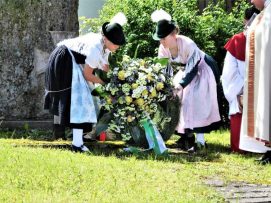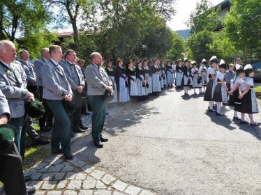 Nach zwei Jahren war es den Samerberger Trachtenvereinen Hochries-Samerberg und Almenrausch-Rossholzen wieder möglich, einen gemeinsamen Jahrtag zu Ehren der verstorbenen Trachtenkameraden abzuhalten. Heuriger Gastgeber war der Grainbacher Trachtenverein, dessen Erster Vorstand nach dem von Diakon Günter Schmitzberger gefeierten Gottesdienst in der Grainbacher Kirche am Kriegerdenkmal auf den Sinn des Tages einging als er sagte: „Irgendwie ist durch Corona, das noch nicht ganz bezwungen ist und durch den Krieg in Europa die Welt aus der Spur gekommen. Gerade in schwierigen Zeiten zählen Zusammenhalt und unsere Werte, für die wir als Trachtenvereine einstehen und leben“. Dazu passend ergänzte er in Richtung Trachtenvorstand Martin Schober von Rossholzen: „In diesem Sinne freut es mich, dass wir mit Dir lieber Martin und mit Deinem ganzen Verein ein so bäriges ganzjähriges Auskommen haben und gerne wollen wir dieses Miteinander in Zukunft noch weiter ausbauen“. Ein weiterer Dank für das kameradschaftliche Zusammenarbeiten während vieler Anlässe und Veranstaltungen im Jahr galt den weiteren Grainbacher und Samerberger Ortsvereinen wie dem Veteranenverein, der Feuerwehr und der Samerberger Musikkapelle, die auch an diesem Tag für die musikalische Gestaltung sorgte.   Zum Gedenken an die verstorbenen Mitglieder der Vereine wurde von zwei aktiven Dirndln am Kriegerdenkmal ein Kranz niedergelegt. Anschließend spielte die Samerberger Musik den Zug zum Gasthof Maurer, wo bei strahlendem Sonnenschein das Beisammensein im Biergarten richtig gut tat.