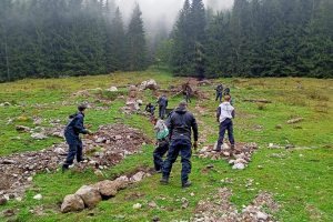 Im Rahmen eines gemeinsamen, mehrtägigen Arbeitseinsatzes beseitigten kürzlich rund 150 Polizeikommissar-Anwärterinnen und -anwärter der Bundespolizei unter Leitung der Nationalpark-Waldarbeiter und der Bergführer des Trainingszentrums auf Kühroint entwurzelte Baumstämme, Steine, Kies und Schlamm von der Weidefläche auf der Schapbach-Alm. Muren- und Wassergräben wurden wieder verfüllt und Geröll landschaftsschonend per Hand und mit behutsamem Maschineneinsatz entfernt.