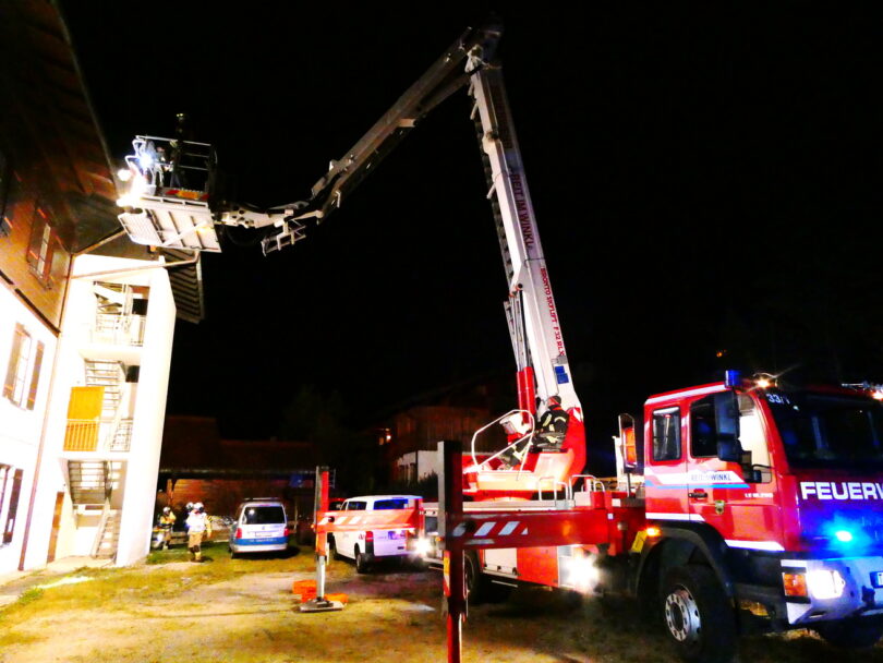 „Zimmerbrand im zweiten Obergeschoss auf der Westseite mit starker Rauchentwicklung – mehrere Personen noch im Gebäude.“ So lautete das Szenario bei einer Gemeinschaftsübung der Freiwilligen Feuerwehren Reit im Winkl und Kössen am ehemaligen Seniorenheim an der Tiroler Straße.