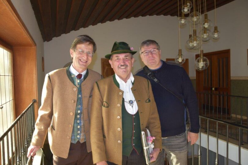 Das Bild (von Kathrin Wagner) entstand bei der Geburtstagsfeier von Georg Antretter und es zeigt von links Georg Antretter sowie von den Samerberger Nachrichten Toni Hötzelsperger und Rainer Nitzsche