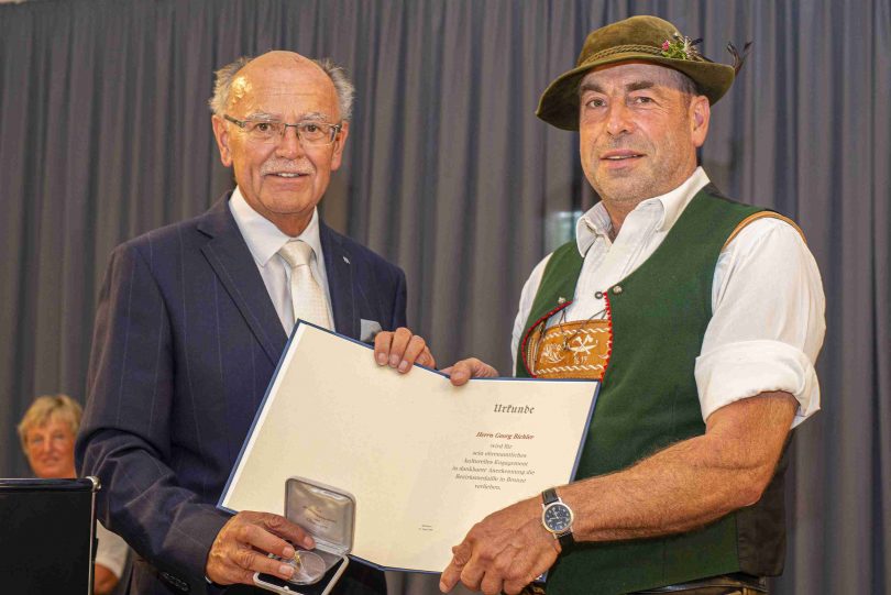 Als Zeichen seiner Anerkennung verleiht der Bezirk Oberbayern an Menschen, die sich in besonderer Weise ehrenamtlich um das öffentliche Wohl in Oberbayern verdient gemacht haben, die Bezirksmedaille. In diesem Jahr zeichnet der Bezirk Oberbayern ungewöhnlich viele Vorbilder aus. Hintergrund ist, dass im vergangenen Jahr der Bezirk Oberbayern wegen der Coronapandemie auf Medaillenverleihungen weitgehend verzichtet hatte. Nun werden in diesem Jahr Personen für die Jahre 2020 und 2021 geehrt. Zu den Geehrten zählt Georg Bichler aus Inzell.