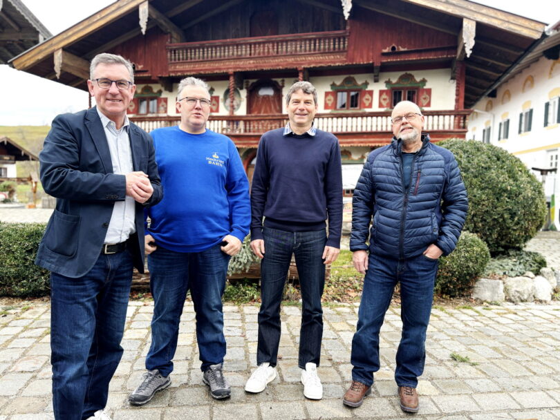 Bericht und Foto: Gemeinde Samerberg – Neuer Geschäftsführer für die Hochriesbahn: unser Bild zeigt von links Samerbergs Bürgermeister Georg Huber, Christian Steinmaßl, Andreas Müllinger und Sepp Müller (Vorsitzender DAV Sektion Rosenheim) bei der Stabübergabe.
