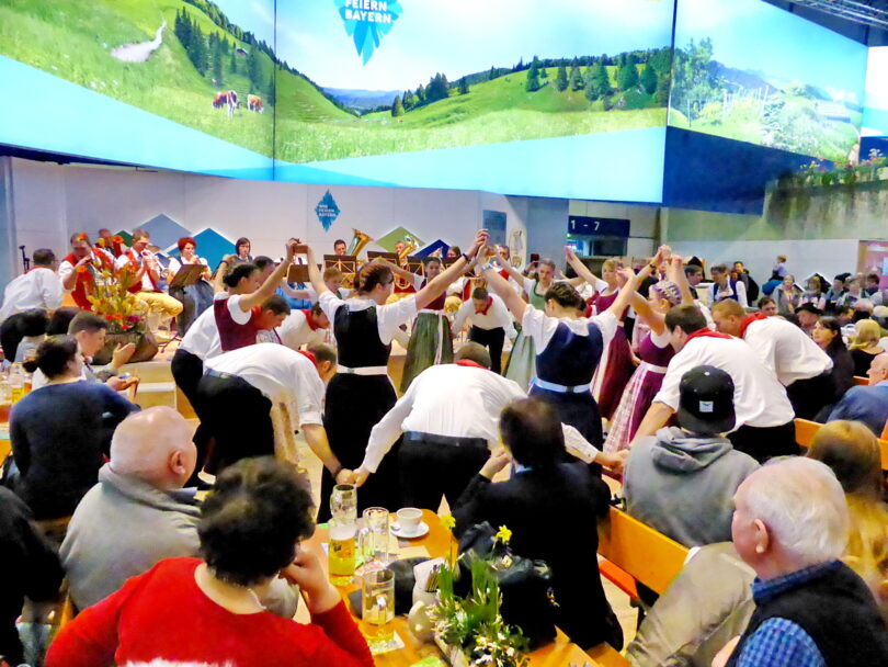 Bericht: Messe Berlin – Archiv-Foto: Hötzelsperger – Blick in die Bayernhalle bei der Grünen Woche mit der Tanzgruppe Bergrheinfeld aus Franken