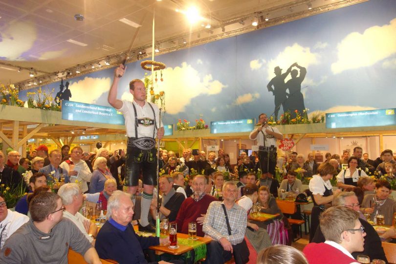 Foto: Hötzelsperger – Blick in die Bayernhalle auf der Grünen Woche mit Goaßlschnalzern aus Kiefersfelden