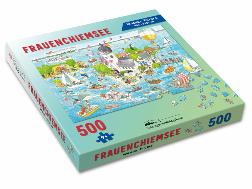 Ein Wimmelbild von Frauenchiemsee als Puzzle wo gibt‘s denn sowas? Natürlich im Chiemgauer Verlagshaus in Breitbrunn -Telefon: 08054-815 oder online: www.chiemgauerverlagshaus.de
