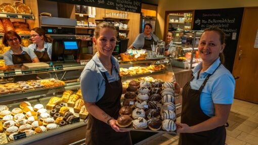 Fotos: Rainer Nitzsche – 1. Das Dorfbäcker-Team in Rohrdorf – von links nach rechts: Gabi, Maria, Marion, Melanie, Ulrike, Franziska, Bianca 2. Franziska – 3. Ulrike und Bianka