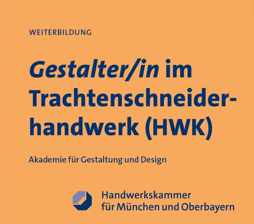 Das Sachgebiet Trachtenpflege und Trachtenforschung innerhalb des Bayerischen Trachtenverbandes weist auf die Weiterbildung zum „Gestalter/in im Trachtenschneiderhandwerk (HWK)“ hin.