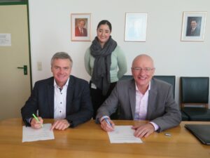 Freuten sich, dass die Gesundheitsregion plus weitergeführt wird: Landrat Peter Dreier, Oberbürgermeister Alexander Putz, Geschäftsstellenleitung Eva-Christina Draeger