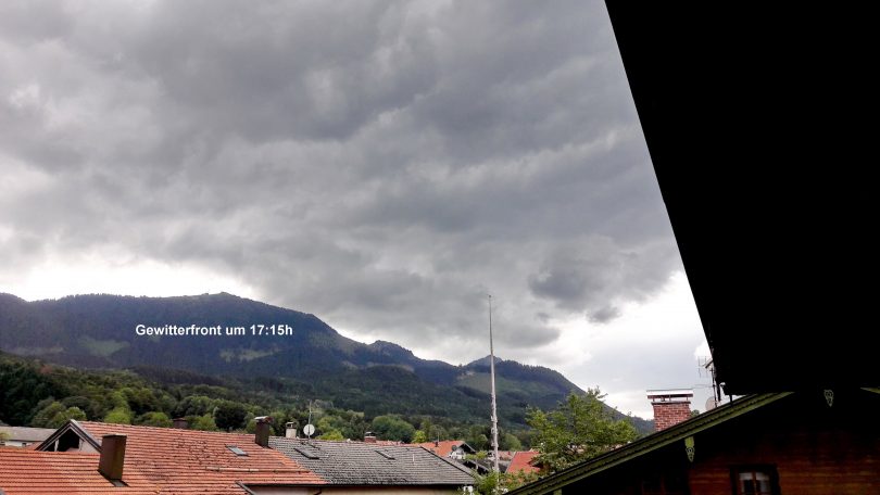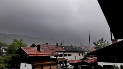 Eine Gewitterfront baute sich am Montagabend auf dem Samerberg auf undsorgte für starken Regen – wie unsere aktuellen Aufnahmen von Grainbach zeigen.