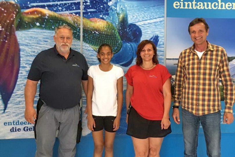 Bildunterschrift: (v.l.n.r.) Michael Heizer von der Technik, Badeaufsicht Brigitte Nicolas und Andreas Freier, Betriebsleiter im Prienavera Erlebnisbad, standen der Schülerin Felicitas Nicolas (zweite von links) am „Girls’Day“ mit praktischen Tipps zur Seite.