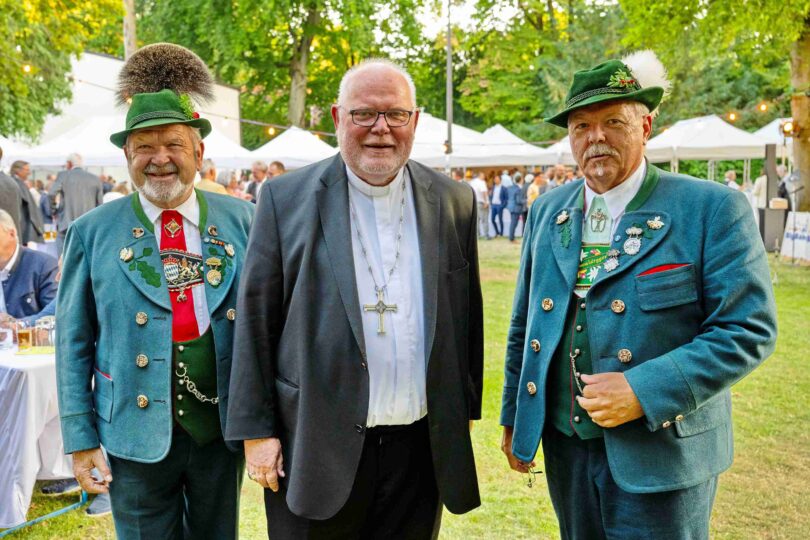 Kirche, Glauben, Tracht und Brauchtum gehören nicht nur zusammen, sie brauchen auch einander, um im Alltag und bei all den gesellschaftlichen Aufgaben bestehen zu können – dies bekräftigten einmal mehr bei einem Sommerempfang im Park von Schloss Suresnes bei der Katholischen Akademie in München der gastgebende Kardinal Reinhard Marx gegenüber Günter Frey und Max Bertl, den Landesvorsitzenden und Ehrenvorsitzenden des Bayerischen Trachtenverbandes.