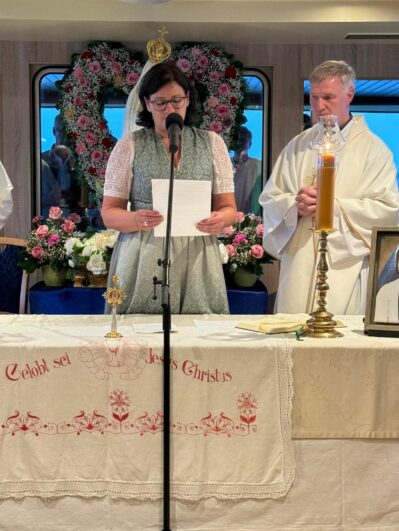 Die Willkommensgrüße sprach namens einer Priestergemeinschaft Pfarrer Martin Strasser vom Pfarrverband Oberes Achental. Auf der zweistündigen Schiffahrt würdigte Prediger und Pater Buob aus Hochaltigen die Maria, die Mutter Gottes, mit dem Thema „Kennst Du das Ziel Deines Lebens?“ und bekräftigte, dass Maria immer wieder Halt im Alltags- und Glaubensleben gibt. Pfarrer Martin Straßer und seine Mitbrüder im kirchlichen Dienst luden nach der Heiligen Messe noch zu einer Anbetung ein und erteilten den eucharistischen Segen für die Heimat. Ein besonderer Dank für die gute Vorbereitung und Unterstützung galt noch Gitti Winkler und ihren Helfern sowie der Chiemsee-Schifffahrt für deren Entgegenkommen.