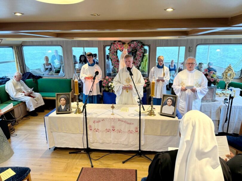 Bereits zum vierten Mal stach vom Hafen in Prien-Stock das große und voll besetzte Motorschiff „Edeltraud“ zu einer Gottesdienst-Wallfahrt in See, um auf dem „Bayerischen Meer“ angesichts herrlicher Naturkulissen am Festtag „Maria Geburt“ ein aktives Glaubensbekenntnis abzulegen.