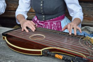 Die Zither im Fokus – beim Glentleitner Aktionstag steht das Saiteninstrument im Mittelpunkt. Bildquelle: Bezirk Oberbayern, Archiv FLM Glentleiten