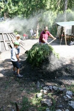 Am Dienstag, 6. August, und Donnerstag, 8. August, dürfen sich junge Museumsbesucher zwischen 8 und 12 Jahren selbst als Köhler versuchen und gemeinsam einen Minimeiler errichten (14 – 16 Uhr, Anmeldung über Anmeldeformular unter www.glentleiten.de an freilichtmuseum@glentleiten.de). Am Ende der Veranstaltungswoche (voraussichtlich Freitag oder Samstag, 9. oder 10. August) wird es nochmals spannend, denn die Kohlenernte steht an. Dann wird sich herausstellen, ob Luftzufuhr und Temperatur im Meiler richtig dosiert waren und qualitätvolle Kohle in Säcke abgefüllt werden kann. Die Glentleitner Holzkohle können Interessierte auch jetzt schon im Museumsladen erwerben.