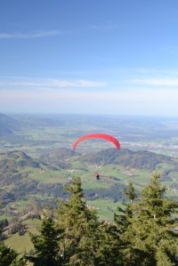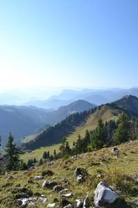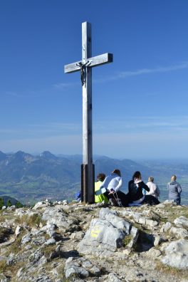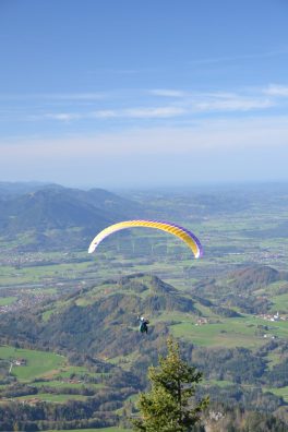 Der Grund für den Drang gerade auf diesen Gipfel ist offensichtlich: Das grandiose Panorama in alle Richtungen, übrigens eine Eigenschaft vieler Gipfel der Chiemgauer Berge. Schuld daran ist ihr direkter Anstieg aus der Ebene mit oft über 1000 Höhenmetern, was Bergwanderer nicht abschreckt und zugleich hoch genug ist für einen Balkonblick nach Süden bis zum Alpenhauptkamm. Nach Norden in die Ebene von Inntal und Chiemsee schauen dagegen die Drachenflieger und Paraglider wenn sie sich tollkühn in die Tiefe stürzen. Nicht weit von der Hochrieshütte liegen ihre Startplätze, hier tummeln sich bei gutem Flugwetter die Zuschauer in Scharen. Möglich, dass sie ihre Helden zuvor in der Kabine der Hochriesbahn getroffen haben.