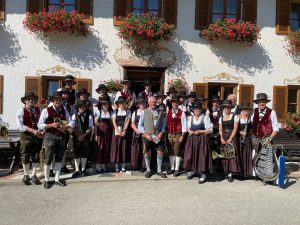 Benedkit Paul und Musikanten der Musikkapelle Samerberg gratulieren Simon Stuffer zum 80. Geburtstag