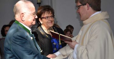 Bericht und Foto: Heinrich Rehberg – Franz und Hildegard Osterhammer feierten in der alten Wallfahrtskirche Sankt Florian an der Straße zwischen Wildenwart und Frasdorf im Kreise ihrer Familie und ihrer Freunde das Fest der Goldenen Hochzeit. Pfarrer Hermann Overmeyer zelebrierte den Festgottesdienst, Bürgermeisterin Marianne Steindlmüller gratulierte für die Gemeinde Frasdorf und überbrachte die Glückwünsche für 50 Jahre gemeinsamen Lebensweg.