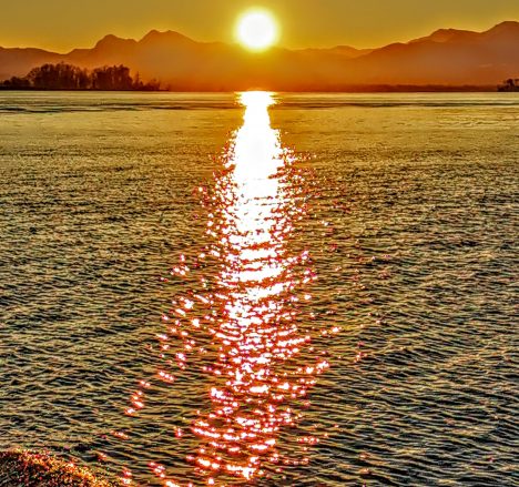 “Chiemseer Morgenstund hat Gold im Mund” – gemäß diesem alten Spruch zeigte sich der Chiemsee am jüngsten neuen Tag in der Früh. Für die Bilder bedanken wir uns beim Fotografen Axel Löffler von der Chiemsee-Schifffahrt.