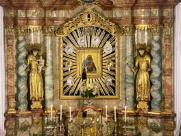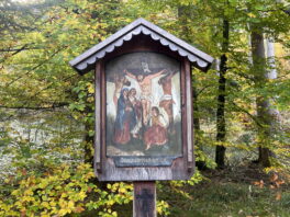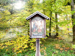 An drei Samstagen fanden auch heuer im Oktober die „Goldenen Samstage“ in der Wallfahrtskirche „Maria Heimsuchung“ in der Einsiedelei Kirchwald im Pfarrverband Neubeuern-Nussdorf statt. Nach langer Tradition kommen zu diesen Feierlichkeiten nicht nur Pilger aus den nahen Gemeinden Nussdorf und Samerberg, sondern von weither, um der Gottesmutter Maria in der über 300 Jahre alten und idyllisch gelegenen Kirche die Ehre zu erweisen und ihr die ganz persönlichen Anliegen vorzutragen. Der Kirchenbau entstand nach einer Quellen-Entdeckung, der man heilende Kräfte zuordnete. Die Kirche als auch nebenan die Klause erlitten im letzten Jahr einen Schaden am Holzschindeldach. Um das Eindringen von Wasser in den Dachstuhl aufzuhalten und in das kunsthistorisch wertvolle Kirchenschiff zu vermeiden, haben aufwendige Renovierungs- und Gerüstarbeiten sowie eine Spendenaktion (Pfarrkirchenstiftung St. Vitus – DE98750903000002120623 GENODEF1M05) begonnen. Nach dem Gottesdienst bestand noch Gelegenheit zu einer kleinen Kaffee- und Brotzeit-Einkehr. Die Bewirtung übernahm in der kleinen Hütte mit zusätzlichen Außen-Sitzplätzen auch diesmal nach guter Tradition die Schneiderwirtsfamilie von Nussdorf.