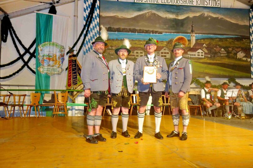 Fotos: Hötzelsperger – Auszeichnung für Ehrenvorstand Hans Pichler vom Trachtenverein Rimsting durch die Gauvorstände Michael Hauser und Florian Niedermaier vom Gauverband I und dem Vertreter des Gebietes Simssee Hans März.