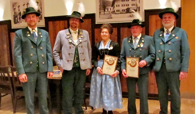 Gebietsvertreter Alois Lankes überbrachte dazu auch die Glückwünsche und den Dank der gesamten Gauvorstandschaft, überreichte den beiden eine Ehrenurkunde und steckte ihnen das Goldene Ehrenzeichen an. Zudem gratulierte er dem GTEV Siegsdorf zum einem vorbildlichen und aktiven Vereinsleben und dem guten Zusammenhalt. Abschließend forderte die jüngeren Generationen auf, sich die beiden Geehrten als Vorbild und Ansporn für eine fruchtbare Weiterentwicklung des Vereins zu nehmen.