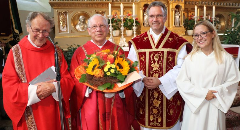 Zusammen mit den Pfarrgemeinden des Pfarrverbands Oberes Priental feierte Pfarrer i.R. Johannes Weindl in der gut besuchten Pfarrkirche Heilig Blut in Umrathshausen sein Goldenes Priesterjubiläum. Die Fahnen der Umrathshauser und Frasdorfer Vereine umstanden den Altar. Am traditionellen Tag der Priesterweihe im Erzbistum München und Freising, am Peter- und Paulstag 1968, wurde Johannes Weindl im hohen Dom zu Freising von Julius Kardinal Döpfner zum Priester geweiht. Nach seinen Kaplansjahren in Markt Indersdorf und Berchtesgaden war er 38 Jahre Pfarrer in Geisenhausen. Hier führte er alle grundlegenden Änderungen des zweiten vatikanischen Konzils durch, begann mit der Berufung von Lektoren und Kommunionhelfern und gründete als Dekan den ersten Pfarrverband. 2012 trat er in den Ruhestand und verließ seine Pfarrei. Seitdem wohnt Pfarrer Weindl in Aschau und hilft in vielfältiger Weise im Pfarrverband Oberes Priental mit.
