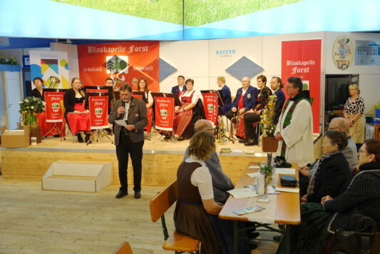 In seinen weiteren Ausführungen bat der Geistliche, dass sich die versammelten Aussteller auch fortan um das Wohl der Mitmenschen sorgen mögen, um im Sinne Gottes für Andere da zu sein. Die musikalische Gestaltung der Feier übernahm die Blaskapelle Forst aus dem Landkreis Schweinfurt in Unterfranken. Nach dem Innehalten mit gemeinsamen Gebeten, Liedern und der Bayernhymne waren die bayerischen Aussteller und Bewirter wieder für die Berliner und ihre Gäste in der Bayernhalle 22b da.