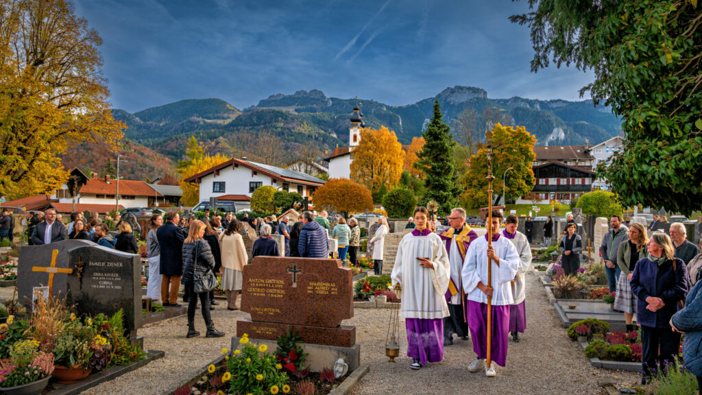 Bei einer ökumenischen Andacht am Allerheiligentag versammelten sich zahlreiche Gläubige auf dem Friedhof in Aschau im Chiemgau, um gemeinsam der Verstorbenen zu gedenken. Pfarrer Paul Janßen erinnerte in seiner Ansprache an die Bedeutung dieses stillen Feiertages: „Der Friedhof ist wie heute in großer Zahl ein Ort der Begegnung von Lebenden und Toten. Ganz besonders wollen wir heute an jene denken, die einsam sind, weil sie alleine vor einem Grab eines bis zuletzt Verstorbenen stehen.“