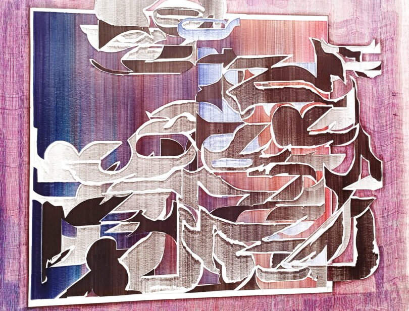 Der großformatige „Wurf“ von Sebastian Speckmann, bei dem Sebastian Speckmann Motive unterschiedlichster Holzstiche aus dem 19. Jahrhundert verarbeitete.