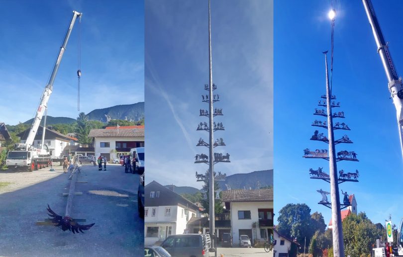 Der Maibaum in Grainbach neben dem Gasthof Maurer ist Geschichte. Nach den routinemässigen Kontrollen galt es für den örtlichen Trachtenverein Hochries-Samerberg den Baum samt den schönen Figuren mit Hilfe eines großen Kranes umzulegen. “Was machen wir mit unserem Baum?” – auf diese Frage hatte die Vorstandschaft mit Erstem Vorstand Peter Sattlberger an der Spitze eine Idee in Form eines Kirta-Festes zusammen mit dem “Hamperwirt”. Dabei soll das Baumholz auch gleich sinnvolle Verwendung finden, deshalb werden beim Kirtafest am Kirchweihsonntag, 17. Oktober v sogenannte Schwedenöfen, die vom umgelegten Maibaum herausgeschnitten werden, zum Verkauf angeboten werden. Der Erlös dieser Aktion kommt der Restaurierung des Maibaumgestells zugute. BeimKirtafest, das nur bei schönem Wetter möglich ist und um 11.30 Uhr im Biergarten des Gasthauses Maurer beginnt, spielt die Musik “Boarisch Bris” und es treten die Kinder- und Aktivengruppe des Vereins auf.