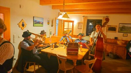 Die Stimmung in der kleinen Runde im Grainbacher Vereinslokal war sehr gut und gemütlich und es konnte viel und ausgelassen getanzt werden. Die beiden Grainbacher Patenvereine überraschten zur Freude des Gastgebers mit einem Ehrtanz. Für das musikalische Aufspielen sorgten die Hubertus Musikanten aus Riedering. Diese unterhielten die überwiegend jungen Trachtler noch bis spät in die Nacht.