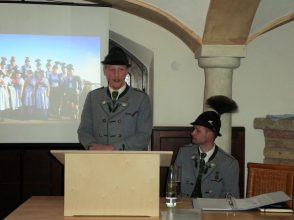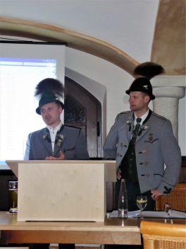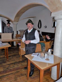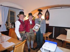 Rückblickend erinnerten Vorstand Peter Sattlberger, Schriftführerin Vroni Ascher, Kassier Michael Sattlberger, Jugendvertreterin Christina Spöck und Vorplattler Johannes Stuffer an viele Höhepunkte. Zu diesen gehörten die Fertigstellung einer Chronik (ist noch erhältlich bei der Vorstandschaft), überaus erfolgreiche Theateraufführungen und die Teilnahme am Gauder Fest im Zillertal, am Altbairischen Trachtenfest in Bad Kohlgrub sowie an den Gau- und Trachtenfesten in Prutting, Lauterbach und Rossholzen. Als „Königs-Veranstaltung“ wurde eine Fahrt mit ´der von Michael Sattlberger senior erstellten Inn-Plätte zusammen mit den Schifffahrtsleuten von Nussdorf bezeichnet. Bei der Jugend waren mit 20 Buam und 21 Dirndl im Alter von 5 bis 14 Jahren insgesamt 27 Proben zu bewältigen, als kleines Dankeschön für den Probeneifer wird es im heurigen Frühjahr einen Ausflug geben. Für die Aktiven war eine 14tägige Reise nach Kanada mit insgesamt 39 Auftritten ein schöner, aber anstrengender Höhepunkt. Seit 30 Jahren gehören die Historischen Samer als eigene Abteilung zum Grainbacher Trachtenverein. All die Zeit kümmerte sich Ehrenvorstand Hans Sattlberger um das Auftreten mit den Pferden und um die Bewahrung der alten Samer-Tradition. Für diese Verdienste wurde er von Michael Sattlberger senior zum Ehrenobmann mit Urkunde ernannt. „Seit der 1.200-Jahr-Feier in Rossholzen im Jahr 1988 habe ich mich gerne um das Säum-Wesen gekümmert, ich nehme die Auszeichnung stellvertretend für alle Rosserer an“ – so Hans Sattlberger in seinen Dankesworten. Wie Vorstand Peter Sattlberger in seinen weiteren Ausführungen erläuterte, ist der Bau eines dringend notwendigen Vereinsstadels derzeit auf Eis gelegt, hier soll es Gespräche mit der Gemeinde geben, um gemeinsam zu einer Lösung zu finden. Bürgermeister Georg Huber würdigte den aktiven Verein, der mit seinen Samern in den letzten 30Jahren Samerberger Geschichte geschrieben hat. Für 2020 –so Georg Huber- steht das Jubiläum „50 Jahre Gemeinde Samerberg“ an, dieses soll mit der Bevölkerung und mit den Vereinen gefeiert werden. „Um all die Herausforderungen eines so rührigen Vereins in einer lebendigen Gemeinde zu schaffen, ist es unbedingt notwendig, dass die Mitglieder ihren Vorstand und die gesamte Vorstandschaft unterstützen“, sagte der Bürgermeister abschließend. Im Ausblick wurden unter anderem folgende Festlichkeiten festgehalten: zum 125jährigen Jubiläum soll es kein Festzelt, aber eine Jubiläumsfeier, einen neuen Maibaum und voraussichtlich eine Bettelhochzeit unter der Federführung der Theatergruppe geben. Der Trachtenverein wird sich auch zukünftig an der Pflege des Kriegerdenkmals in Grainbach beteiligen. Vorstand Florian Niedemaier vom Patenverein Riedering lud die Grainbacher Trachtler zu einem gemeinsamen Busausflug am 29./30. Juni nach Pottenstein, Bayreuth und Oberfranken ein, Anmeldungen hierfür werden bis 10. Mai erwartet. Weitere Auswärtstermine im heurigen Trachtensommer sind für die Mitglieder des GTEV Hochries-Samerberg am 27. April das 110jährige Gründungsfest in Halfing, die Beteiligung der Historischen Samergruppe am größten österreichischen Trachtenfest in Zell am Ziller am 5. Mai, das Gaufest des Gauverbandes I in Altötting am Sonntag, 21. Juli mit Graupreisplatteln am 28. Juli, die Mitwirkung mit der Samer-Gruppe beim Jubiläum „400 Jahre Salinenstadt Traunstein“ vom 9. bis 11. August sowie die Teilnahme von Musikkapelle, Trachtenverein und Samer-Gruppe beim Trachten- und Schützenzug des Münchner Oktoberfestes am Sonntag, 22. September. Vor Ort sind die nächsten und wichtigsten Termine ein Offener Volkstanzabend am Donnerstag, 25. April im Rahmen der 40. Volksmusikalischen Fortbildungswoche, der gemeinsame Trachtenjahrtag mit den Rossholzener Trachtlern am 30. Mai, das Almsingen am Sonntag, 4. August und das Obstangerfest am 15. August beim „Käser-Bauern“ in Grainbach. Die Bergmesse auf der Hochries, die traditionell mit der Alpenvereinssektion Rosenheim gefeiert wird, ist heuer am Sonntag, 29. September.