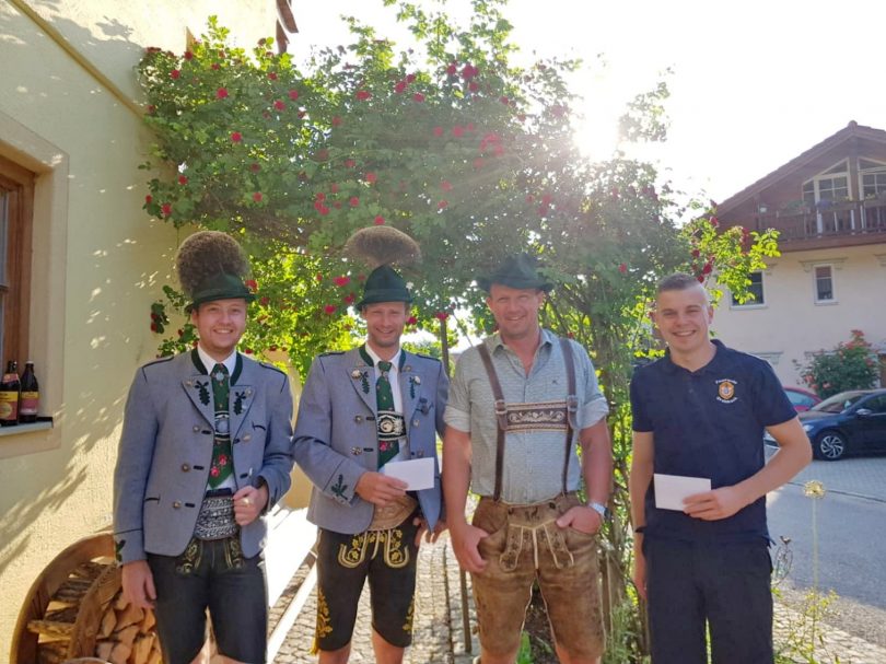 Das Foto zeigt von links nach rechts: Michael Auer und Peter Sattlberger (Vorstände Trachtenverein Grainbach), Organisator Hansi Sattlberger und Peter Heiß (Kommandant FFW Grainbach)