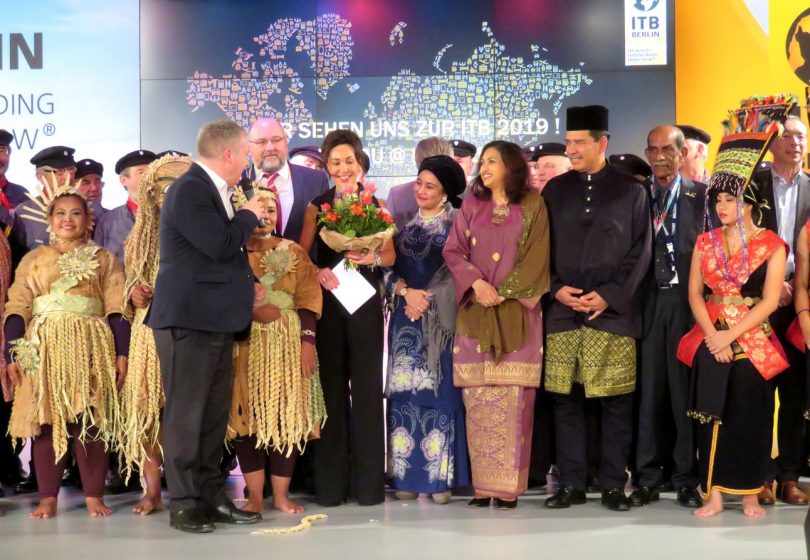 Nach Ehrung der Partner Region 2018, Mecklenburg-Vorpommern, durch David Ruetz und Dr. Martin Buck, erfolgte die Staffelübergabe an Malaysia. Das Land wird 2019 offizielles Partnerland der ITB Berlin. Dato’Dr. Siew Ka Wei, Chairman of Malaysia Tourism, nahm den „Staffelstab“ in Form eines Strandkorbes aus den Händen des Wirtschaftsministers Harry Glawe dankend entgegen.