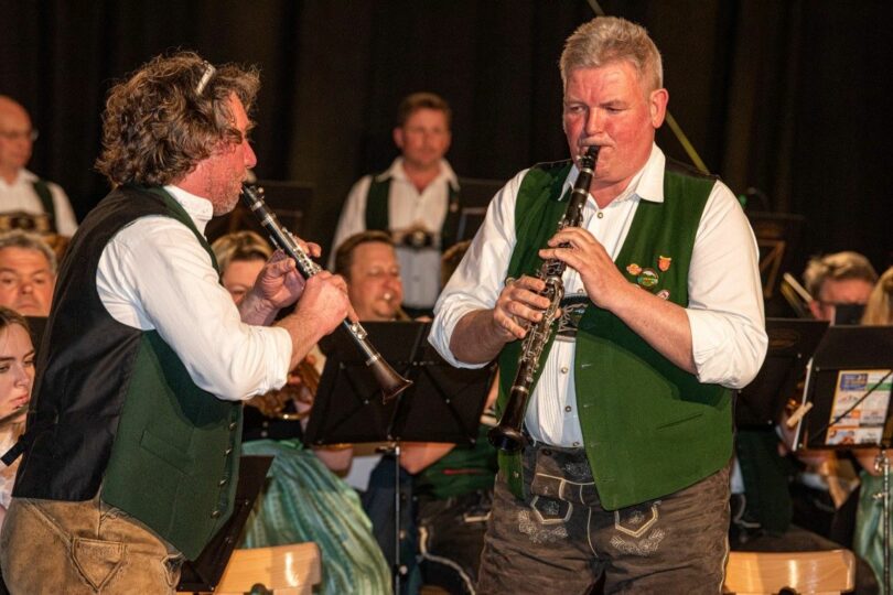 Das Bravourstück für zwei Klarinetten „Spatzen-Polka“ von Alexander Pfluger führte zu tosendem Applaus für die atemberaubende Darbietung der beiden Solo-Klarinettisten Thomas Strohmayer und Franz Pichl – eine Zugabe war mehr als angemessen.