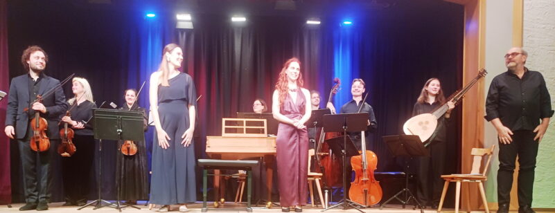 Die Accademia Di Monaco unter Leitung von Joachim Tschiedel am Cembalo, und Konzertmeister Bruno van Essevel (Violine), hier mit der jungen Sopranistin Nae Matakas.