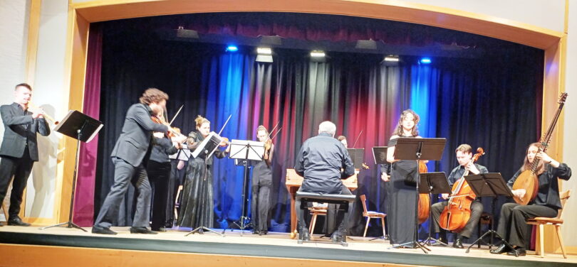 Ein musikalischer Hochgenuss war es, das Originalklangensemble der Accademia Di Monaco aus München auf den historischen Instrumenten der Barockzeit spielen zu hören – Laute, Oboe, Bass, sechs Violinen, Viola und Violoncello unter der Leitung von Joachim Tschiedel, der sowohl dirigierte als auch das historische Cembalo spielte. Tschiedel hatte zusammen mit Mary Utiger, Professorin für Barockgeige, 2014 die Accademia di Monaco gegründet, um dem musikalischen Spitzennachwuchs Auftrittsmöglichkeiten und eine Plattform für Konzertprojekte zu geben. Studierende und Auszubildende der Münchner Musikhochschule treffen sich zu mehreren Arbeitsphasen im Jahr und werden bei dem Projekt von Profis gecoacht. So gab es Debüts beim Mozartfest in Würzburg, den Brühler Schlosskonzerten und anderen Konzertreihen.