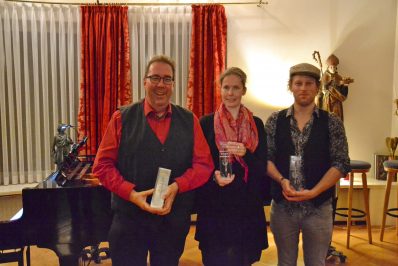 Alle acht Autoren der Shortlist wurden bis zum Ende des Galaabends auf die Folter gespannt. Auf den dritten Platz mit 300 Euro bewertet, landete Manuel Zerwas mit seiner bewegenden Geschichte. Den zweiten Platz und 500 Euro durfte David Jacobs mit „Haikus“ in Empfang nehmen. Den Literaturpreis „Grassauer Deichelbohrer“ gewann Heidi Lackner für die Geschichte „Der Duft sterbender Bücher“. Alle Geschichten der 35 Autoren, die es in die Longlist schafften, sind auch im Buch „Literaturpreis Grassauer Deichelbohrer 2019“ Anthologie, herausgegeben von Angeline Bauer im by arp Verlag nachzulesen.